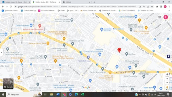 Rua Alan Kardec 463, Califórnia, Nova Iguaçu - RJ. CEP 26220-110